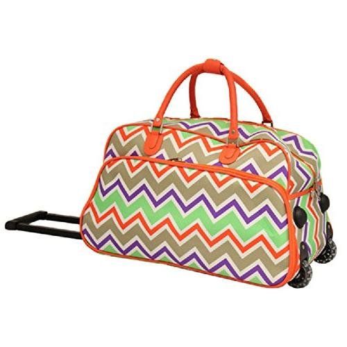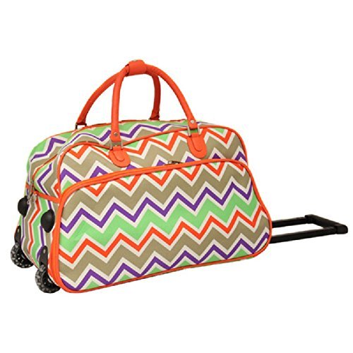 Product DescriptionOrange Chevron Striped Pattern Carry Rolling Upright Duffle Bag, Stripe Inspired Travel Duffel Bag, Zigzag Lines Themed Duffel, Wheeling Luggage, Fashionable0