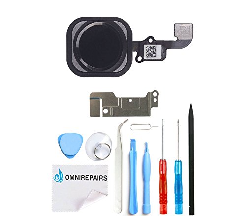 Omnirepairs-For Black iPhone 6 & 6 Plus Home Button Flex Cable Replacement + Home Button Bracket + Rubber Gasket + Tools (Black)