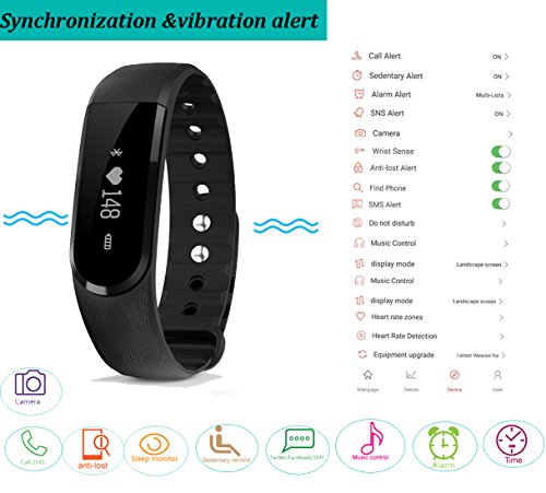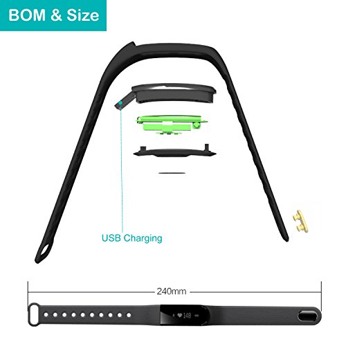 -. Feature : Vertical & Horizontal touch display, Gesture control, turn the wrist lit screen. Charge: USB port charging; Battery:60mAh li-polymer rechargeable battery; Standby time: 5-10 days; N.W.: 28g / Heart rate & activity tracker: resting/static and dynamic 2 kinds models. Calculate heart rate accurately by PPG sensor. / Feature: Heart rate monitor, Pedometer, distance, Calorie burned and kilometer monitor, Automatic sleep monitor, smart alarm clock, Sedentary alert, finding phone, anti-lost alert, SMS/Facebook/Twitter/WhatsApp/Linkedin/Instagram alert, camera remote capture, music control etc. / Detachable design, USB port charging, Nordic chipset with low power consumption.Waterproof IP67 ,not afraid of washing hands/ doing housework/ walking under rain(But please don't wear it to swim) / Compatible with :Android Phone 4.4 or later: Samsung Galaxy S6 S5 S6 Edge S7 S7 Edge S5, S4, S3. Note 4 3, Nexus 5X 6P, Oneplus One Two, HTC M8 M9, Sony Xperia Z4 Compact Z5 Z5 Compact etc.IOS 7.1 or later: iPhone 5 5s 5c 6 6s 6 Plus 6s Plus ect.
