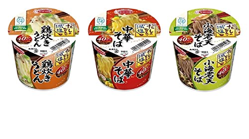 -. Feature : 日本初の「機能性表示食品のカップ麺」「塩分40%オフなのに美味い」と人気の商品、全3種セットです。 / 『鶏炊きうどん』滑らかなのど越しのうどんと、コクのある白湯鶏だしが特長。『中華そば』滑らかで歯切れの良い麺と、コクのある醤油スープがマッチ。 / 『小海老天そば』風味豊かな歯切れの良いそばと鰹だしが絡み合い、香ばしく揚げた小海老天がアクセント。 / 減塩食品にしつつも、しっかりだしの旨みを味わいたい方にぴったりの商品です。 / 一度に全て、食べ比べが出来るように、3種類セットにしてスピード発送します。