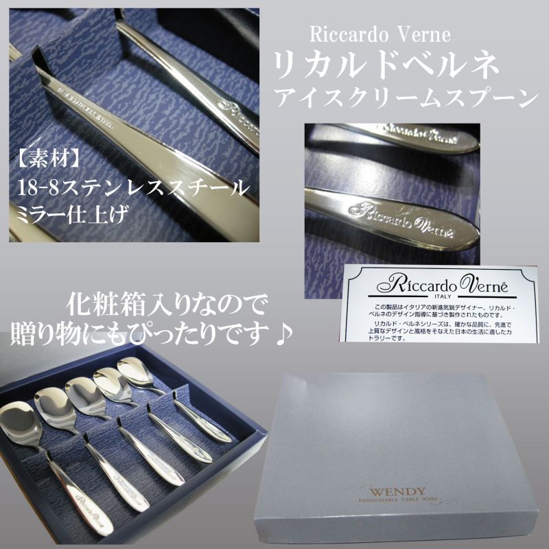 Riccardo Verne リカルドベルネシンプルなデザインのアイスクリームスプーン5本セットです。