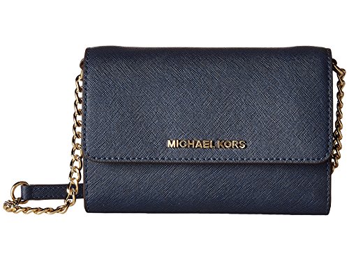 -. Binding : Accessory -. Brand : -. ClothingSize : One Size -. Color : NAVY -. Department : womens -. EAN : 0888235396729 -. Feature : 7" W x 5" H x 1-1/2" D / Interior features 1 cell phone pocket; 5 card slots; one zippered pocket / Logo lettering at front; gold-tone or silver-tone hardware; slit pocket in back / Adjustable crossbody strap with 23" drop Magnetic snap closure / Saffiano leather -. Label : -. Manufacturer : -. Model : 32T4GTVC3L-406 -. MPN : 32T4GTVC3L-406 -. PackageQuantity : 1 -. PartNumber : 32T4GTVC3L-406 -. ProductGroup : Shoes -. ProductTypeName : HANDBAG -. Publisher : -. Size : 7 in x 5 in x 1.5 in -. Studio : -. Title : jet set travel large phone crossbody in NAVY -. UPC : 888235396729