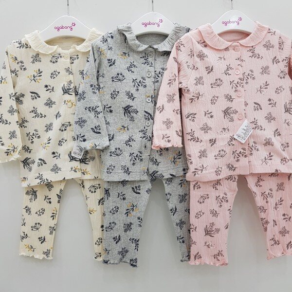 시어서커스타일의 원단으로 실내복이지만 데일리룩처럼 편하게 입힐수있는 옷입니다. 90부터는 어깨단추로 되어있습니다.