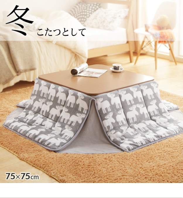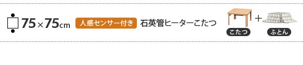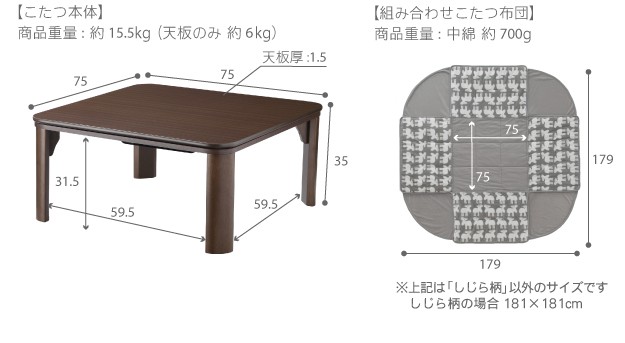 サイズ:こたつ-幅75x奥行75x高さ35cm・約15.5kg、布団-181x181cm・中綿量0.7kg
