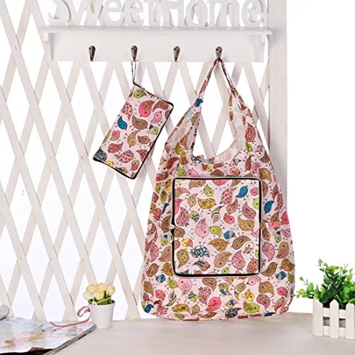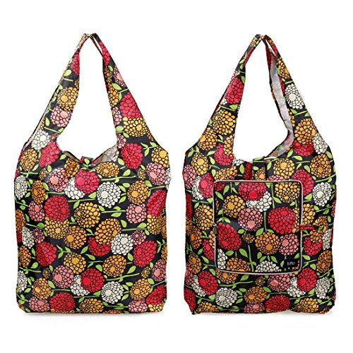 BMC Mixed Design Washable Foldable Wallet Style Nylon Reusable Grocery Bags Tote - (Nature's Beauty) Set of 3