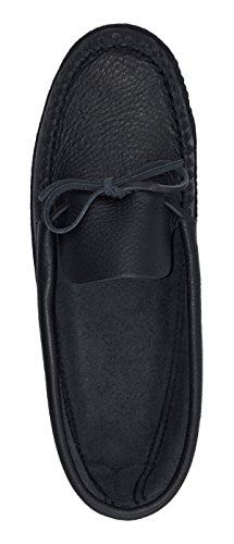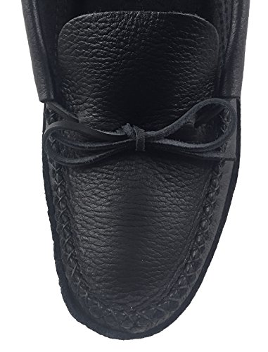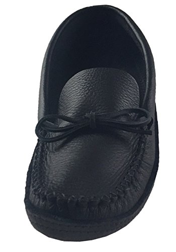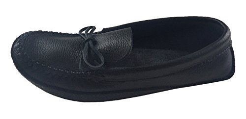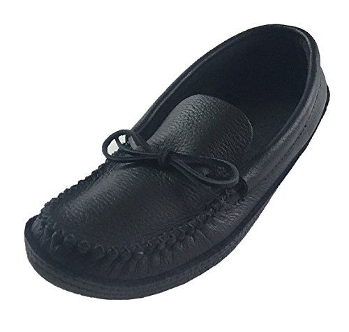 Binding : Apparel Product Description These men's black moccasins have a traditional authentic Native Indian style. They are handmade out of genuine moose hide leather and a nice black color. Moose hide is extra durable and especially flexible and comfortable. They feature a double soft leather sole with a foam padding in-between making them a pleasure to walk in. They come in sizes 7 to 13. They offer you the best craftsmanship as they are handmade by a Native American company from Canada who represent the Huron-Wendat First Nation Aboriginals. They feature a double hand-stitched vamp and laces through the back for tightening. 0
