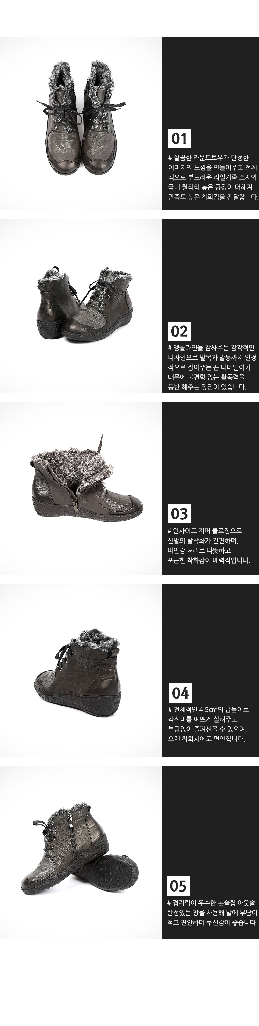 GGG2205 포근퍼[MD COMMENT]활용도 만점의 데일리아이템 소개합니다.급격히 떨어지는 기온을 대비 할수 있는 퍼 스니커즈입니다.따뜻한 착용감은 물론 부드러운 착화감까지 만족스러운 제품입니다.8센치의 넉넉한 발볼에 끈디테일로 더 넓고 좁게 조절이 가능하여 실용성 100%를 자신 할수 있는 제품입니다.신을 수록 편안해 지는 장점이 있고 다리라인을 이쁘게 만들어 줄수 있는 4.5cm의감작적인 높이를 느끼 실 수 있습니다.