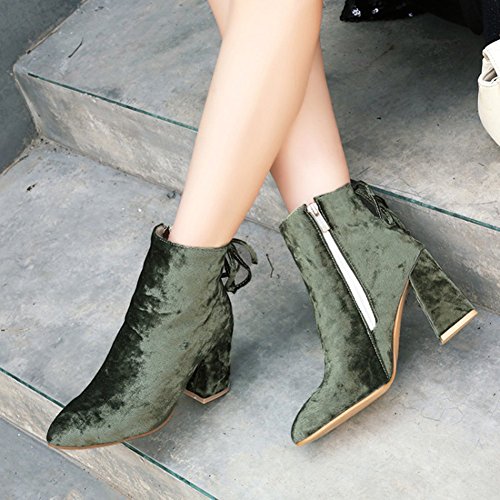 Binding : Apparel Product Description The fall comes, and it is time for elegant women to wear various boots. A pair of suitable boots can add much charm to you. Here is a pair of pretty booties for you. They adopt pointed toe design, which can embellish your foot type better. The chunky high heels make them very sexy to wear. The zipper closure is so convenient, stylish and artistic. The outsoles are made of rubber, wearproof and non-skid. They have no many decorations, which conveys an idea of simpleness. In addition, they are easy matching. Welcome to choose and buy! Aisun is the legal brand, registered in the United States Patent and Trademark Office. All rights reserved. 0