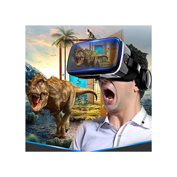 Tepoinn 3D VR 고글 VR 헤드 세트 헤드폰 일체형 게임 영화 비디오 초3D영상 효과 가상 현실 머리 부분 장착 iPhoneX iPhone8Plus / Android SO