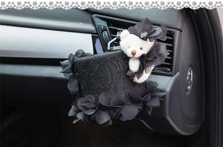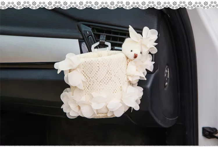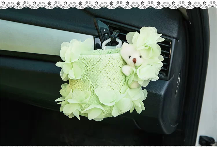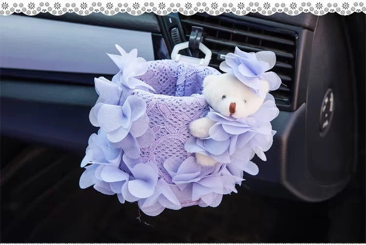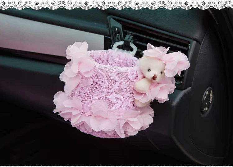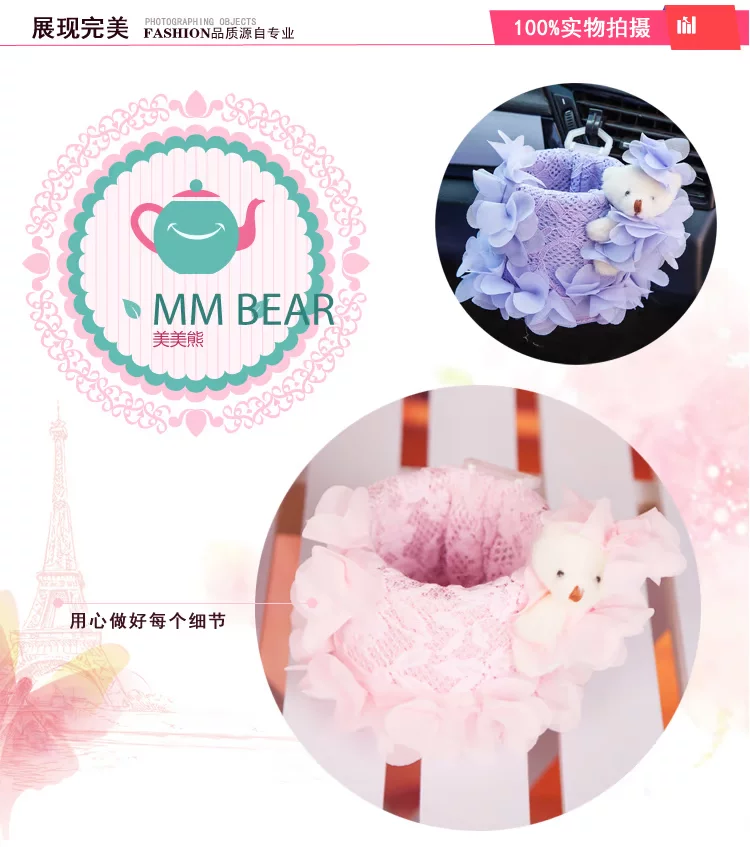 美美熊  可爱蕾丝汽车出风口置物筒 车载置物桶 手机袋收纳桶挂袋美美熊  可爱蕾丝汽车出风口置物筒 车载置物桶 手机袋收纳桶挂袋