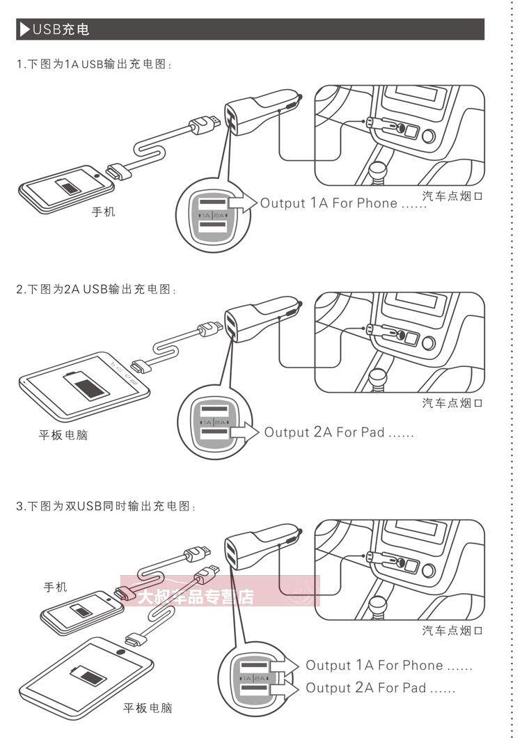 ???????????????????????????1A is a safe car charger for iphone, GPS, MP3 and other electronic products charge;