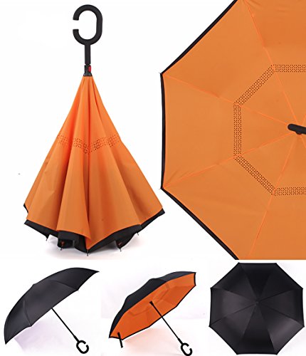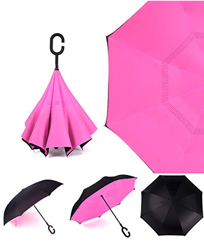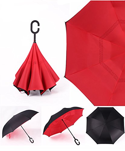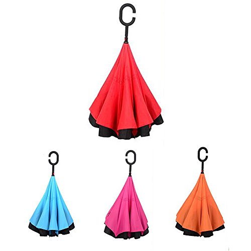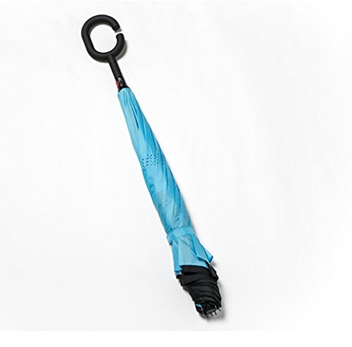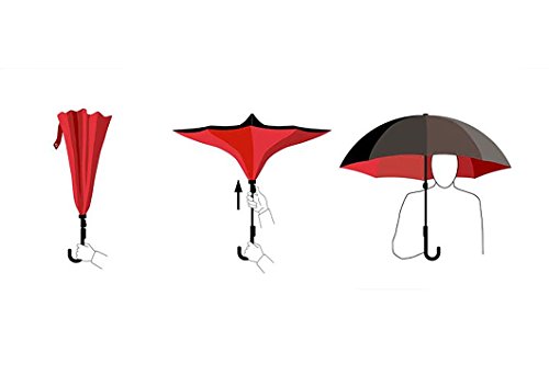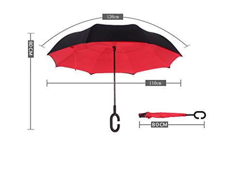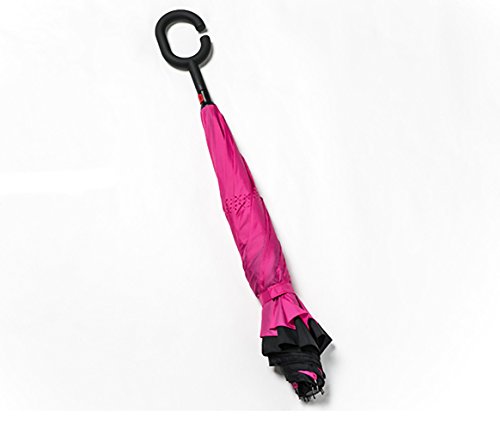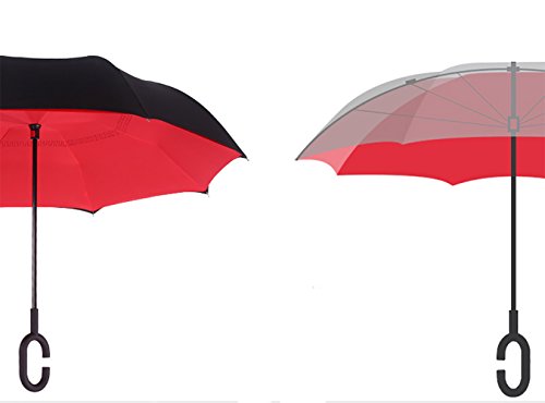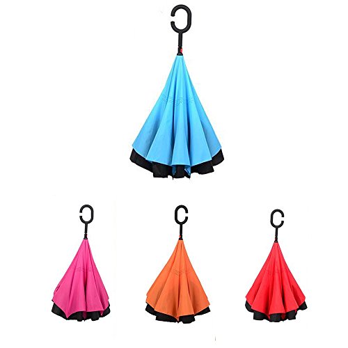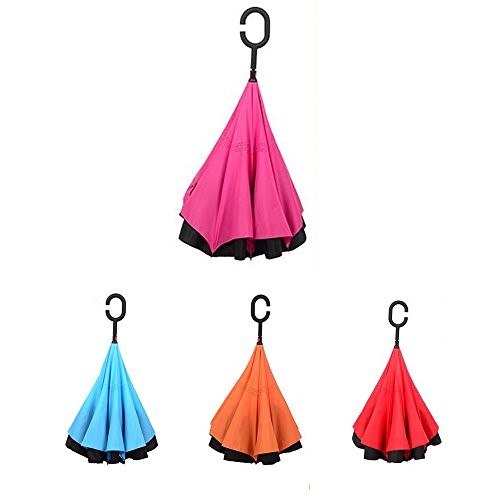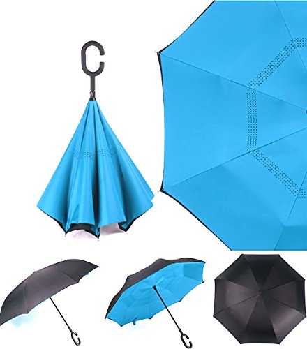 Product Description Reverse/inverted umbrella double-layer automatic, different from the traditional umbrella, more convenient and more useful. With C-handle, more handy to do other tings meanwhile holding the umbrella. Reverse/inverted design, when you get in car or catch bus and subway it will not make your car and people around you wet. And when you get in/off cars or bus it is hardly to get wet. A good choice for you and a great gift to your friends Weight: 0.5kg 0