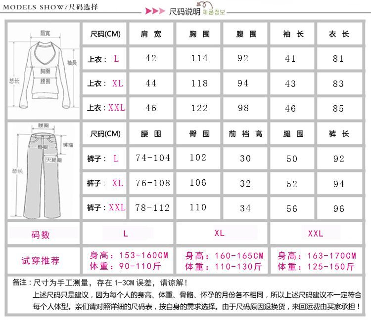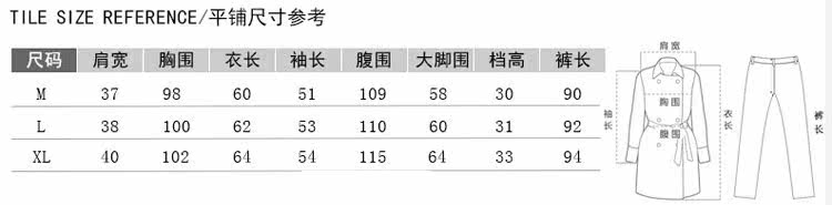 XL码:肩宽 44 衣长 66 胸围 104 袖长 58 裤长 98
