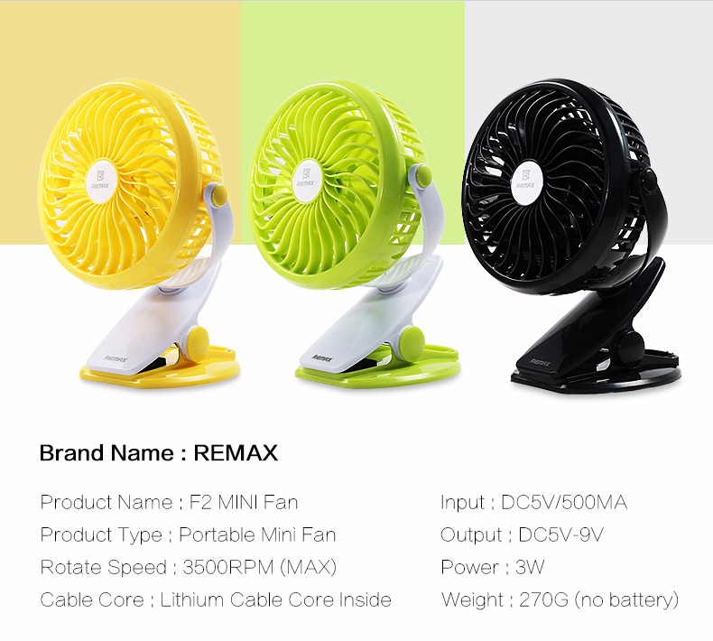 High quality REMAX F9 mini fan USB rechargeable 1200mAh 18650 Lithium battery fan