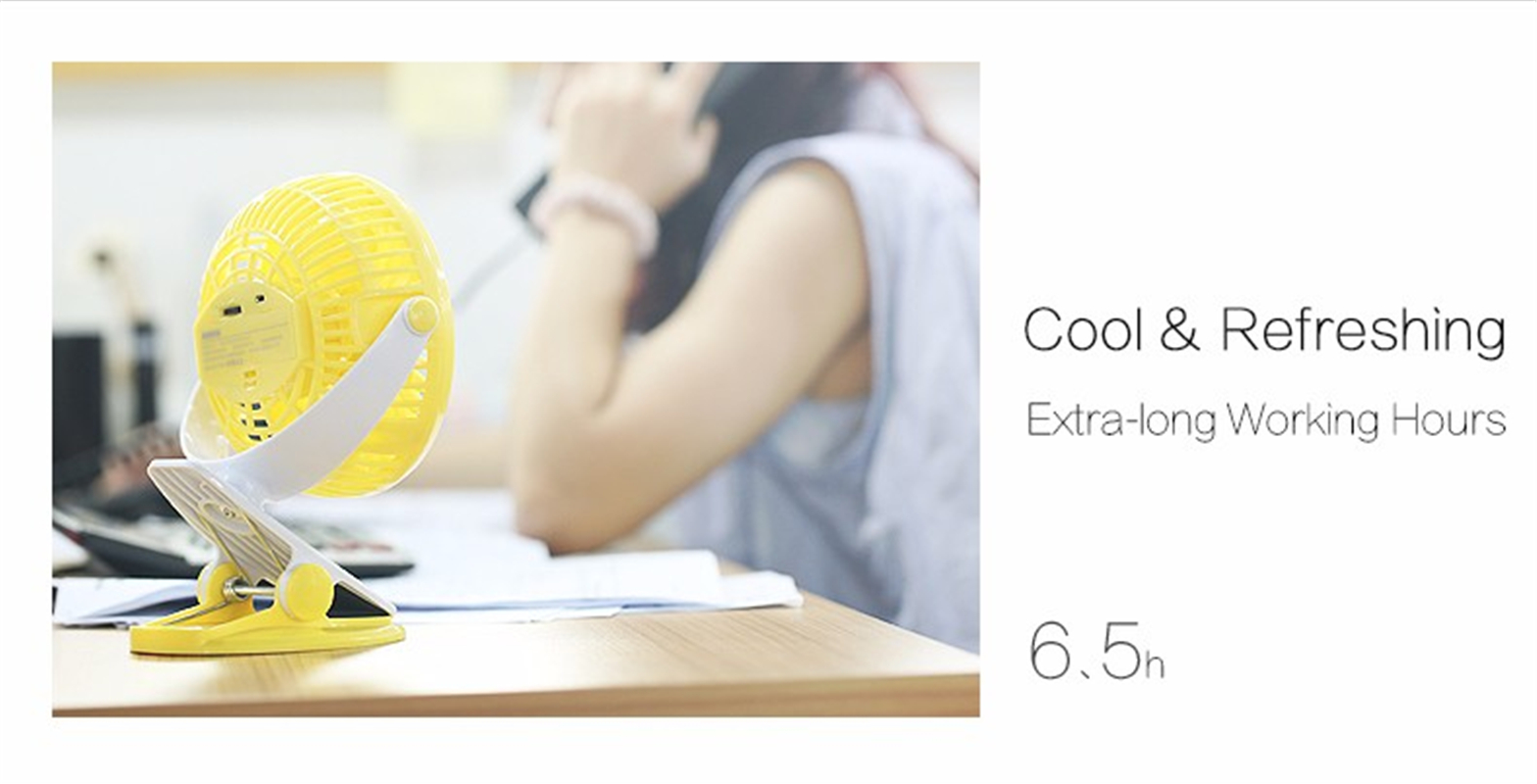 With 1800mAh Li-ion 18650 battery inside the fan, could be powered by laptop, power bank, etc.