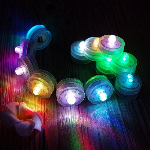These waterproof Submersible LED Lights feature an On/Off Switch and are ready to use out of the box and are thus perfect for lighting up vases, bowls, or any water filled containers. They can turn a boring bowl into a beautiful and exciting centerpiece. They are popular to use for wedding, party, decoration, Christmas, birthday etc.
