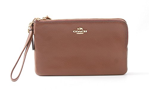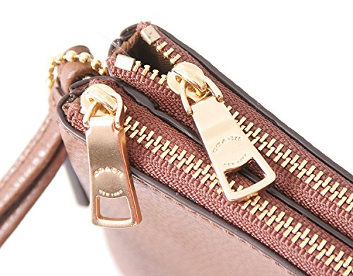 Coach Double Zip Pebble Leather Wristlet Wallet