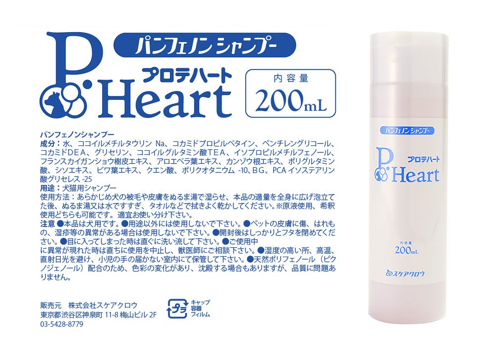 犬 シャンプー パンフェノンプロテハートで毛、皮膚をきれいに。毎日でも洗える、天然成分の優しいシャンプーです。 たっぷりの大容量の200ml。無香料で低刺激シャンプー。アトピー、アレルギーにお悩みの子にも。 トリマー専門誌 『ハッピートリマー』 ペット雑誌『犬吉猫吉』でも 紹介された商品です。 今までになかったシルクの泡で洗い心地良く、シャンプーするたび皮膚が整います。 柴犬、トイプードル、チワワ、フレンチブルドッグ、ポメラニアン の飼い主様からもご愛用いただいています。