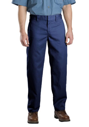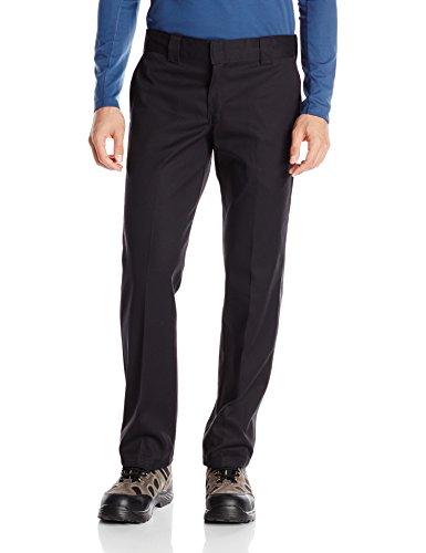 Solid-tone work pant in wrinkle-resistant fabrication featuring slim-straight leg with longer tunnel belt loops