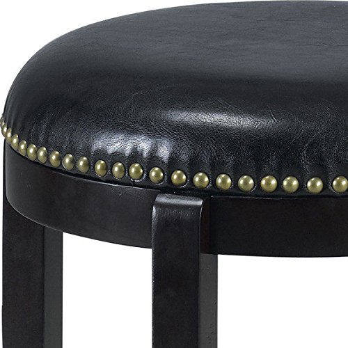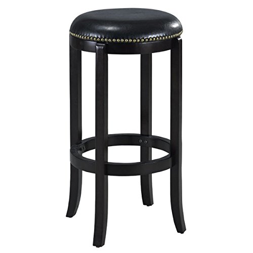 -. Feature : Solid woods construction in black finish / Upholstery materials: premium bi-cast leather covers; black leather upholstery / French legs with tapered bot: full ring footrest for strength and stability / Assembly required, available also in dark oak, cappuccino, and cherry finish / Dimension: 29-inch high by 17-inch in diameter; seat height: 29-inch