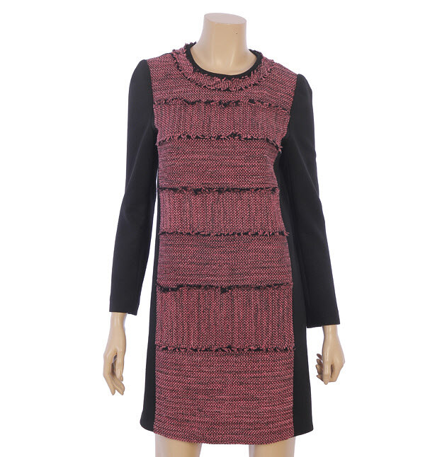 LYNN, 트위드 배색라인과 디테일한 수술 절개 장식이 어우러져 포멀하고 걸리쉬한 멋을 자아내는 원피스입니다