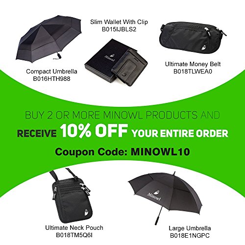 -. Binding : Apparel -. Brand : Minowl -. Color : Black -. Department : unisex-adult -. EAN : 0646437639422 -. Feature : **JUN 29/16 UPDATE. WE HAVE INCREASED THE SIZE OF THE WALLET DUE TO POPULAR DEMAND ✓ ULTIMATE TRAVEL NECK POUCH. The Minowl Ultimate Travel Neck Wallet is slim, comfortable, lightweight and highly durable. It is constructed with high quality 420D Ripstop nylon with double-stitched and reinforced seams. The rear of the wallet is engineered with moisture-wicking and breathable poly-cotton which eliminates uncomfortable heat and moisture / ✓ MULTIPLE FUNCTIONALITY. Designed to be comfortably worn around the neck with an adjustable strap or at the waist using the belt loop. Can be worn on the outside or hidden beneath your clothing. The ideal travel accessory. / ✓ FLEXIBLE STORAGE COMPARTMENTS. This passport holder contains three zippered compartments plus a hidden back pocket keeps all your valuables organized and secure. Protect your cash, passports, boarding passes, credit cards, driver's licence, keys, smartphones (fits iPhone6+, GalaxyS6 & more) and other travel items. / ✓ RFID BLOCKING TECHNOLOGY. Protect yourself from identity theft and high-tech pickpockets. Our wallets are designed with built-in RFID blocking material which ensures your credit cards, ID and passport information will remain safe and confidential. / ★ MAKES FOR A PERFECT GIFT ★ Excellent gift for dads, moms, wives, husbands, friends, golfers, campers, college students and for those who like to travel. ➡ 100% MONEY BACK GUARANTEE. We stand behind the durability of our goods and offer an unconditional guarantee against any defects in craftsmanship. If you are not completely satisfied with out products, we will refund your money no questions asked. -. ProductGroup : Apparel -. ProductTypeName : ACCESSORY -. Size : One Size -. Title : Minowl Travel Wallet RFID Blocking Passport Holder Neck Pouch Travel Accessories -. UPC : 646437639422