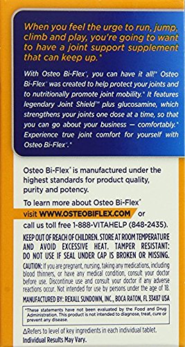 Studio : Osteo Bi-Flex Publisher : Osteo Bi-Flex Binding : Health and Beauty Product Description ?When you want to run, jump, climb and play, you're going to want to have a joint support supplement that can keep up.* With Osteo Bi-Flex, you can have it all! Osteo Bi-Flex Triple Strength was created to nurture and help protect your joints, and to nutritionally support joint mobility.* It features the legendary Joint Shield plus glucosamine, which strengthens your joints one dose at a time, so that you can go about your business - comfortably.* Experience true joint comfort for yourself with Osteo Bi-Flex.* 0