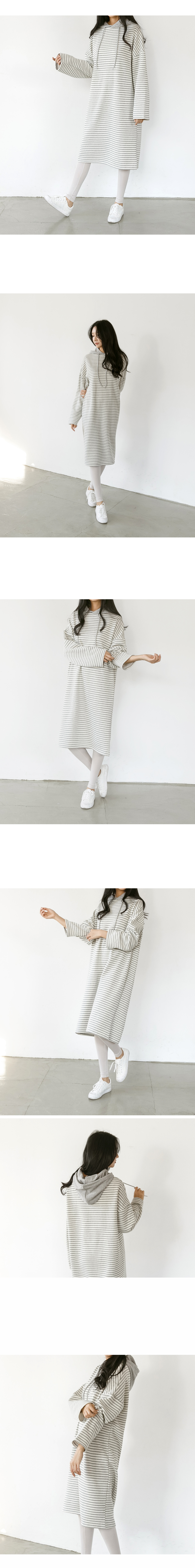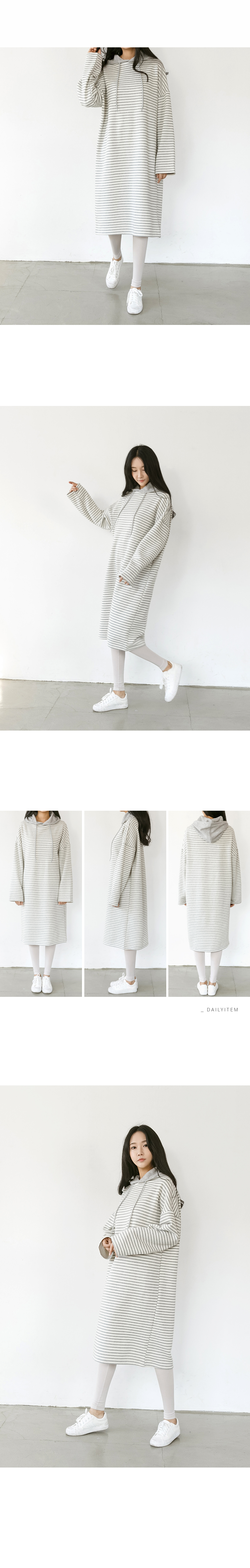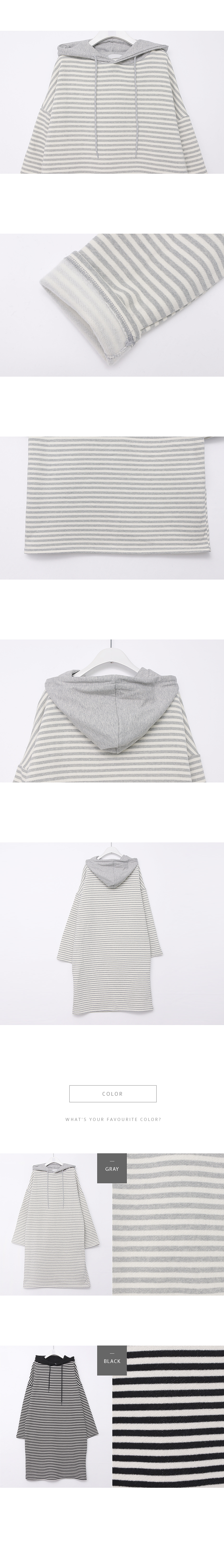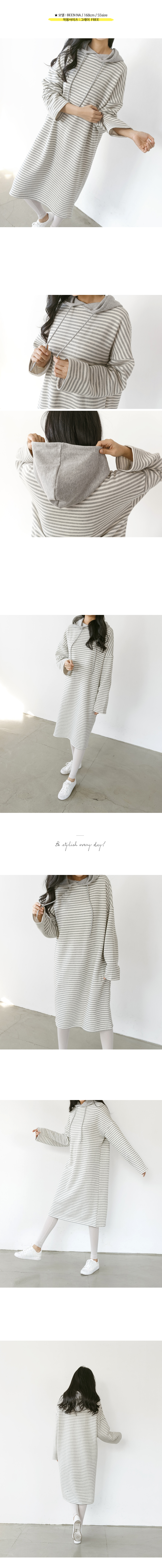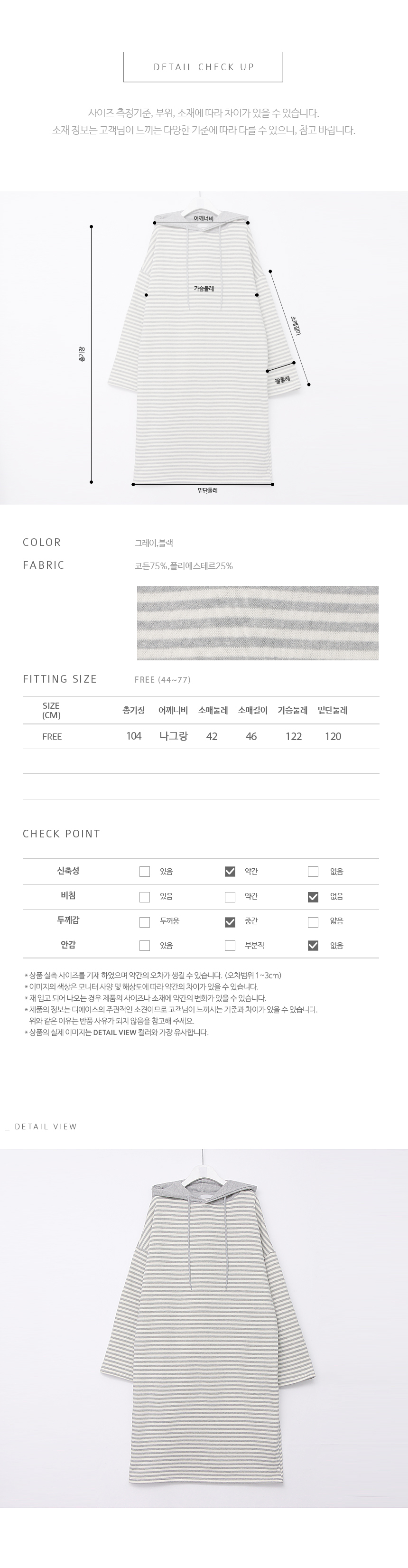 잔잔한 가로 스트라이프가 경쾌한 캐주얼한 느낌의 후드 롱 원피스예요.코튼 소재로 쾌적한 터치감에 약간의 폴리 혼방으로 무겁지 않고 부드러운 홈웨어부터 편안한 데일리 아이템으로 활용도 높은 아이템이랍니다!무릎을 덮는 롱한 길이감으로 겨울 시즌부터 간절기, 봄 시즌까지자주 손이갈 아이템이에요^^색상은 그레이, 블랙사이즈는 FREE 44~77