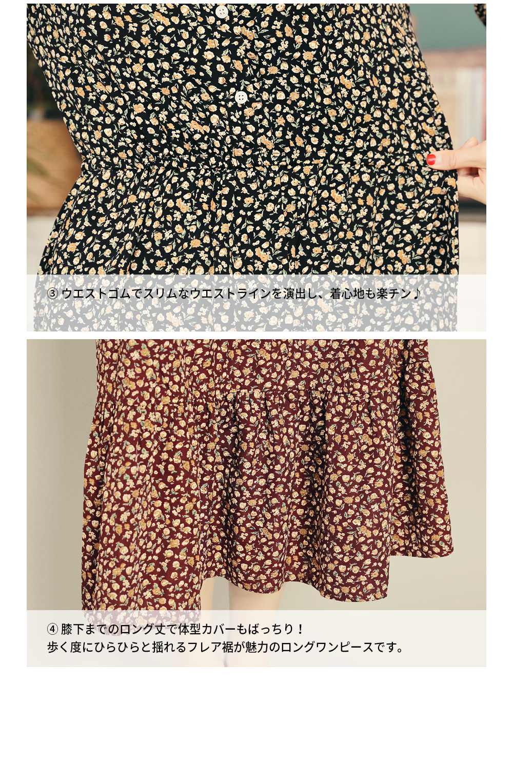 ❤2カラー展開の小花柄ワンピ❤