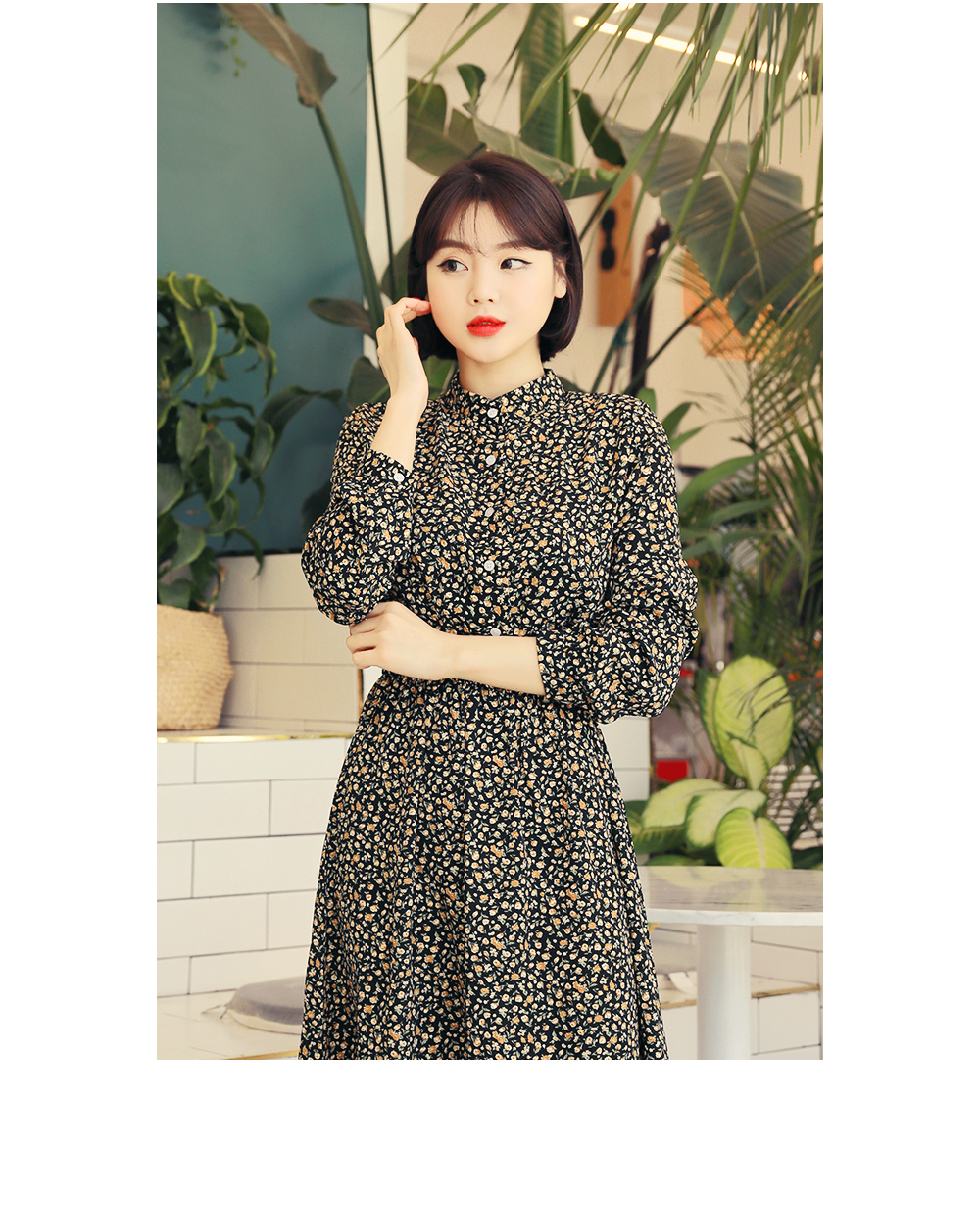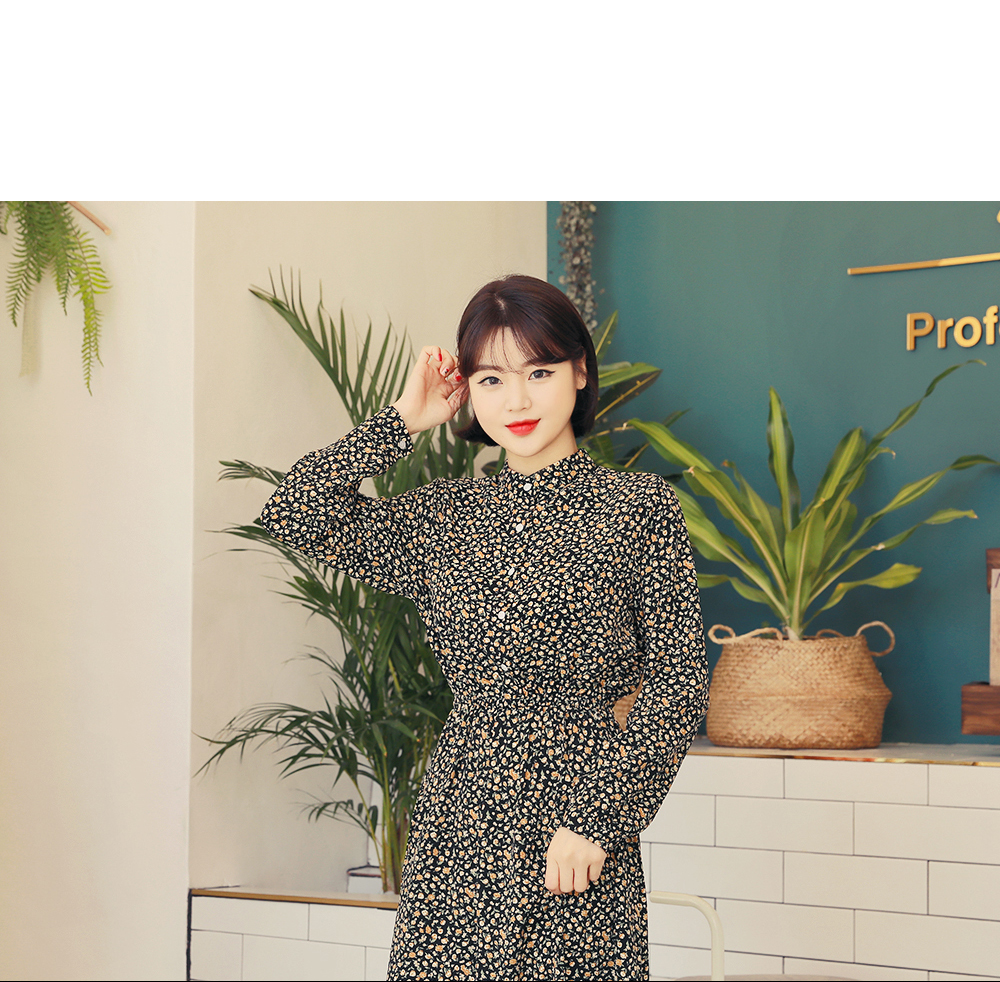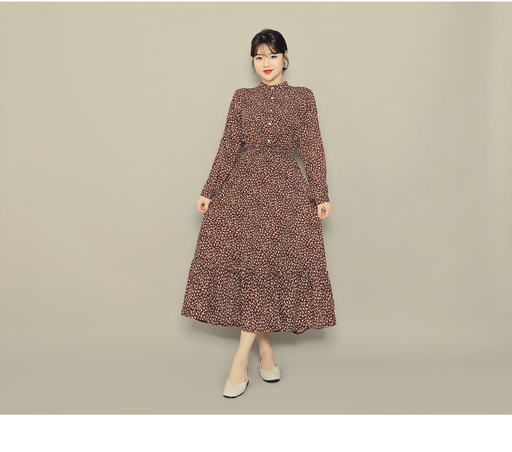 チャイナネックラインにボタンディテールをプラスしたワンピースです♡ウエストゴムで綺麗なシルエットを演出します♡ロング丈で体型カバーはもちろん、歩くたびに揺れるフリルが女性らしさをUP‼ブラック&ブラウンの落ち着いたカラー展開でフェミニンさをより引き立ててくれるアイテムです。