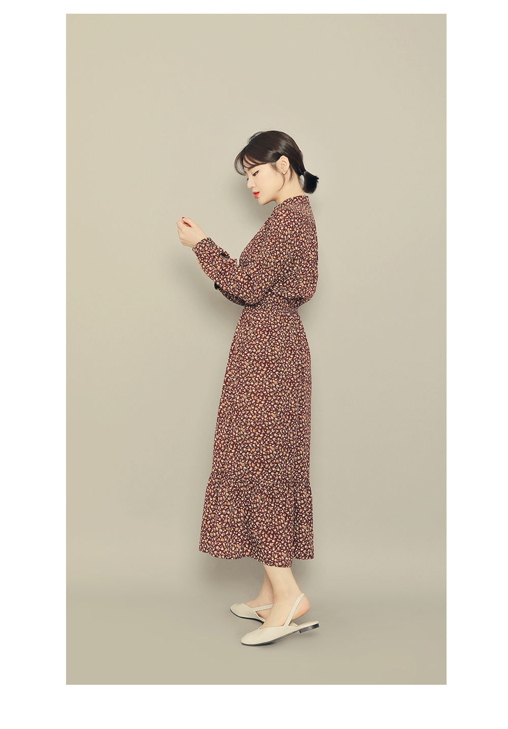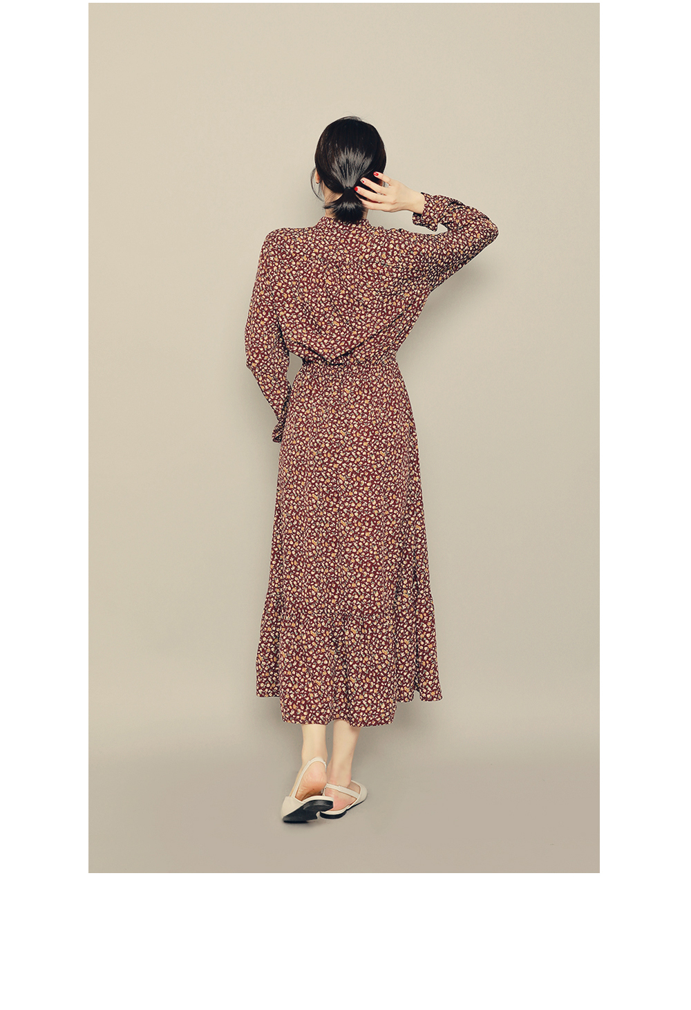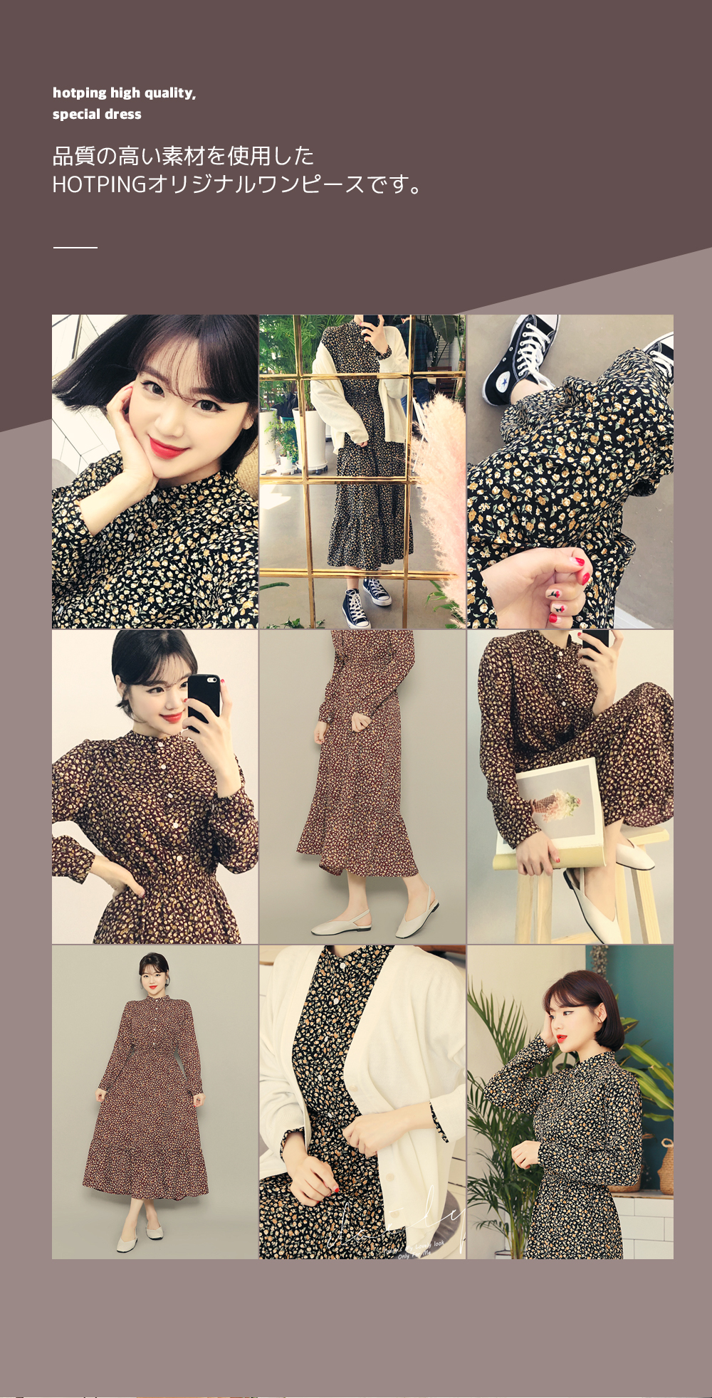 チャイナネックラインにボタンディテールをプラスしたワンピースです♡ウエストゴムで綺麗なシルエットを演出します♡ロング丈で体型カバーはもちろん、歩くたびに揺れるフリルが女性らしさをUP‼ブラック&ブラウンの落ち着いたカラー展開でフェミニンさをより引き立ててくれるアイテムです。