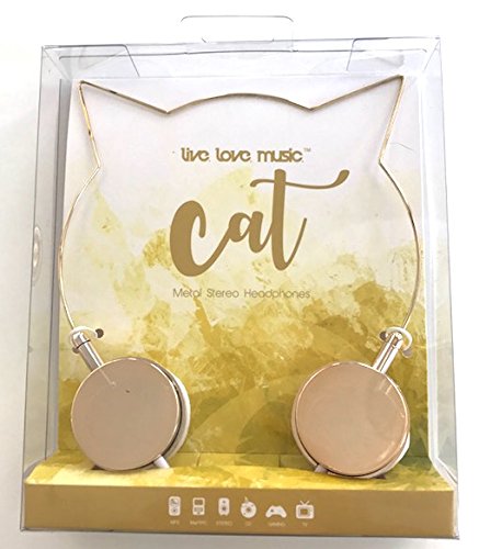 -. Title : Live Love Music Cat Ear Metal Stereo Headphones Gold