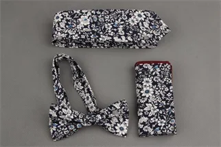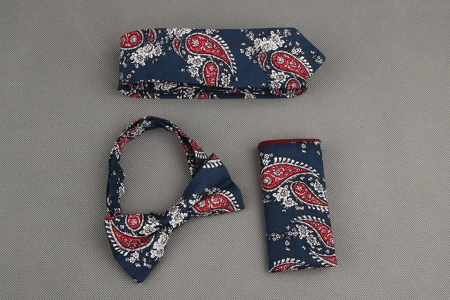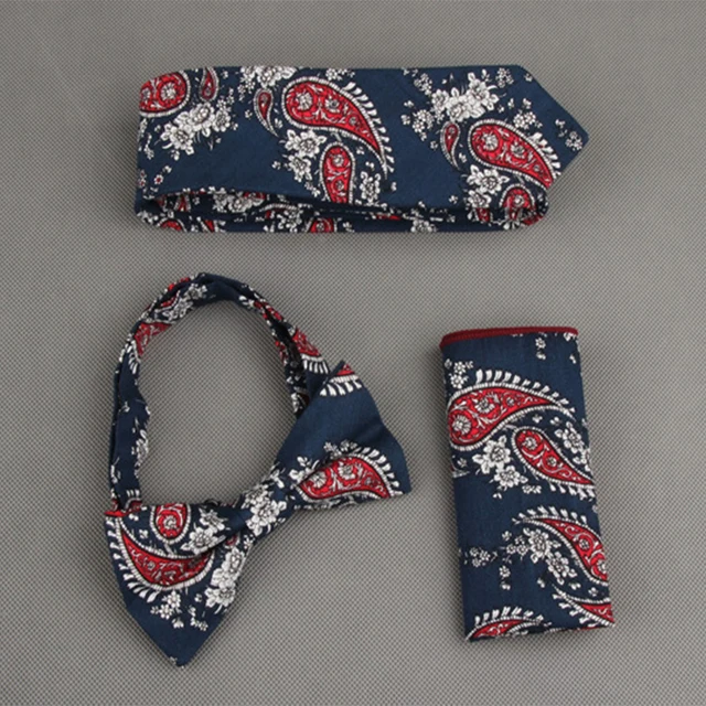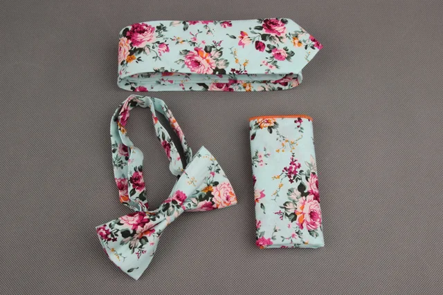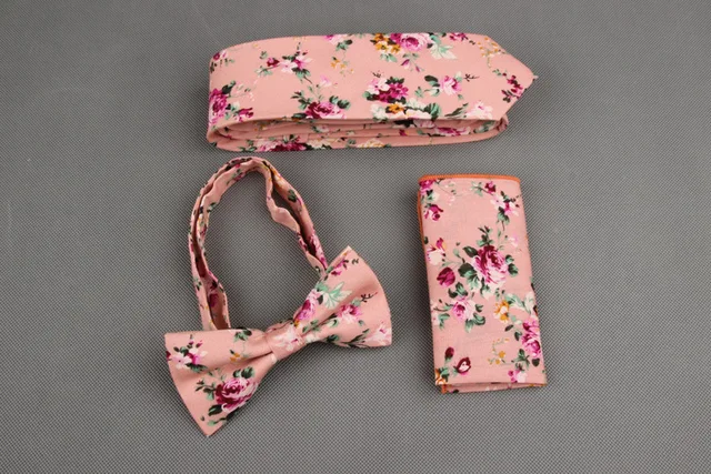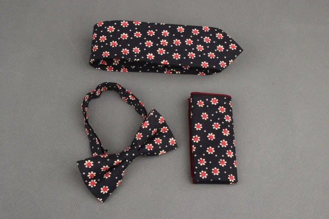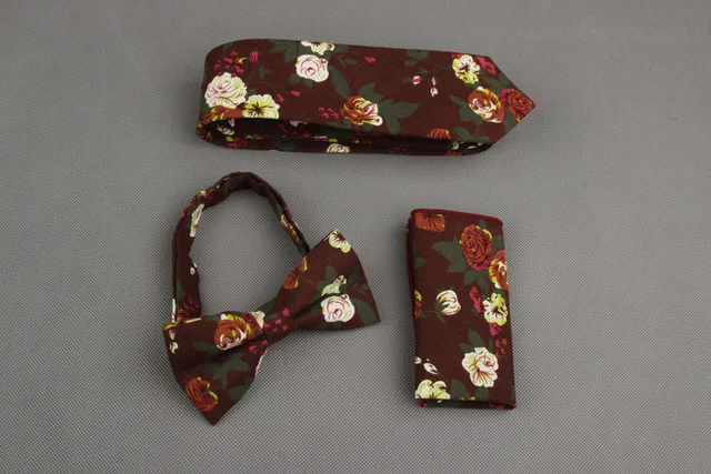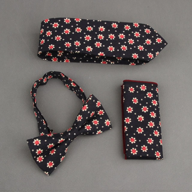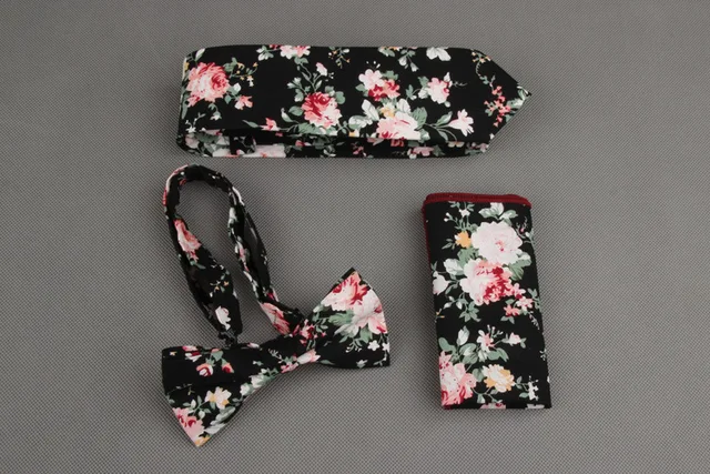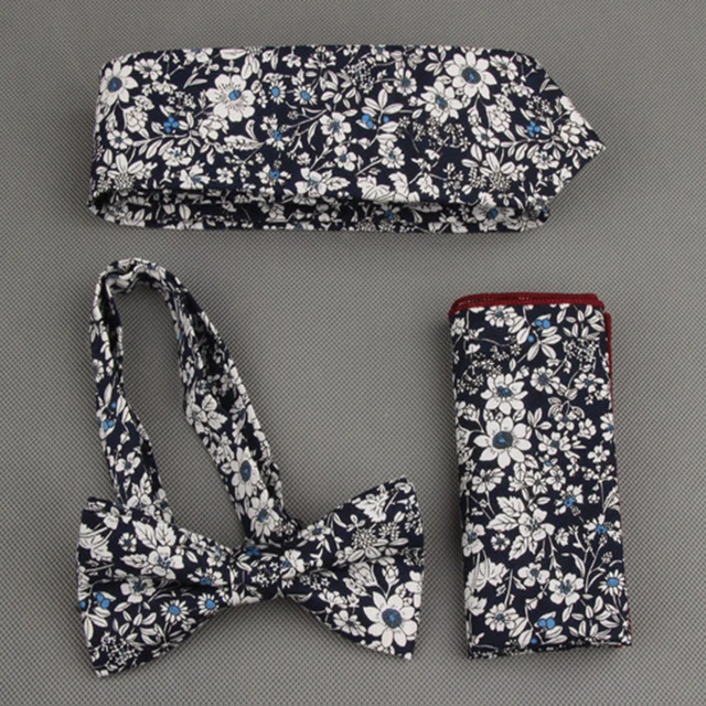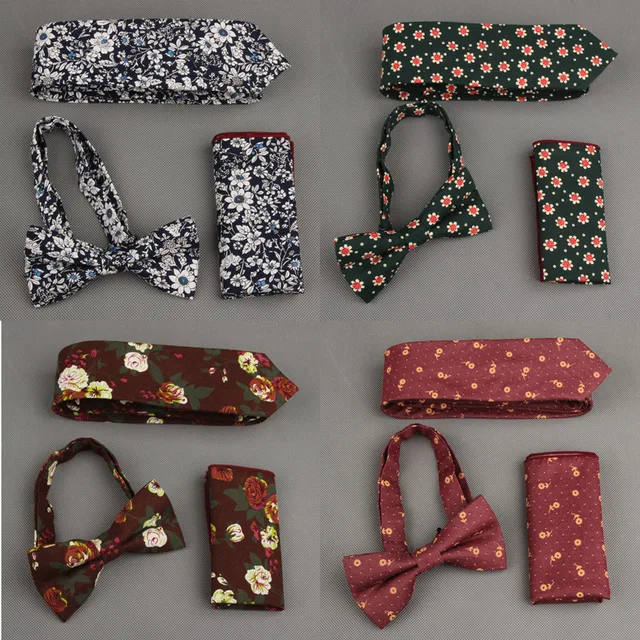| [해외]Mantieqingway 빈티지 인쇄 넥타이 나비 넥타이 손수건 세트 꽃 포켓 광장 남성 웨딩 목에 넥타이 |