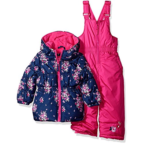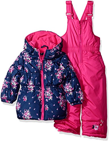 Pink Platinum girls floral print snowsuit jacket with solid color bib