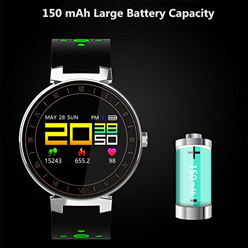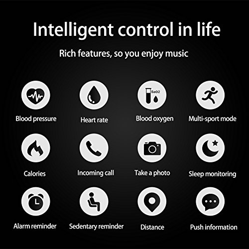 -. Feature : Large Color Screen Display: 0.95 inch OLED touch screen, made of toughened glass with original screen protector; the Nodic 52832 chipset makes the operating system faster and the datas more accurate / Health Monitoring: Tracks real-time heart rate automatically and continuously, and automatically tracks your sleep duration & consistency with comprehensive analysis of sleep quality data,all for a healthier lifestyle; Also tracks real-time blood pressure and blood oxygen on the bracelet, monitoring your health condition at any time / All-day Activity Tracking & Multi-Sport Modes: Accurately record all-day activities like steps, mileage, distance, calories burned; A variety of sport modes: Running mode, Walking mode, Cycling mode, Swimming mode etc; Real-time exercise data display and exercise evaluation / Smart Reminders: See Calls & Messages on Your Wrist, instantly vibrate to remind you of the incoming calls, SMS and SNS contents (Facebook, WhatsApp, Line) notifications on display; never miss the messages that matter. You can long press the touch key to hang up phone calls; you can also set the time of sedentary reminder & alarm clock / Large Battery Capacity & Professional Waterproof: 150 mAh battery capacity contributes to long standby time and using time; IP68 Professional waterproof level, can wear to swim or take showers