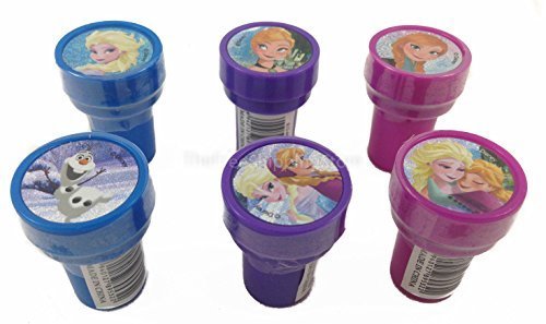 -. Binding : Toy -. Brand : Disney -. Color : Pink and Blue -. EAN : 5512447800013 -. Feature : 100% Brand New Sealed & Disney Licensed Product / Includes: 12x Assorted Frozen Self-Inking Stamps / Each stamp is pre-inked / Perfect for your royal princess party -. IsAdultProduct : 0 -. Label : Disney -. Manufacturer : Disney -. MPN : 1 -. PackageQuantity : 1 -. PartNumber : 1 -. ProductGroup : Toy -. ProductTypeName : TOYS_AND_GAMES -. Publisher : Disney -. Size : One size -. Studio : Disney -. Title : 12 Pieces Disney Frozen Anna Elsa Olaf Stampers Self-Inking Birthday Party Favors