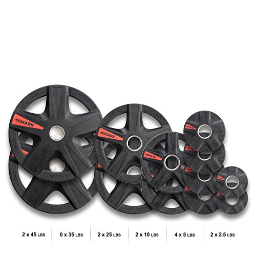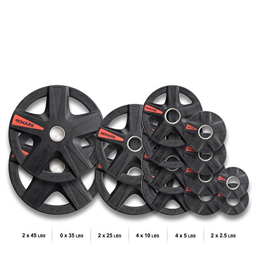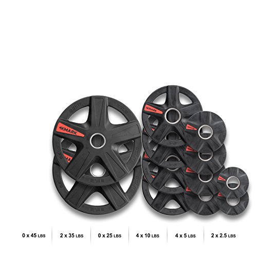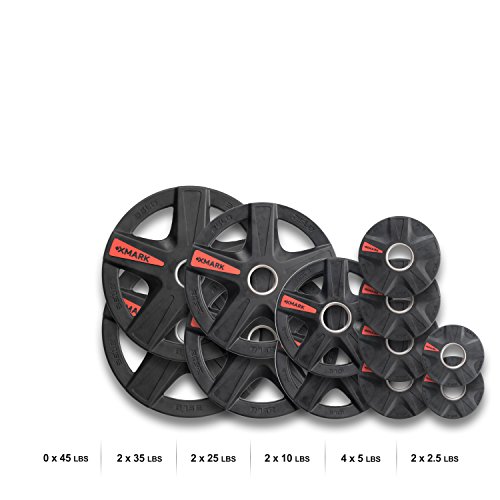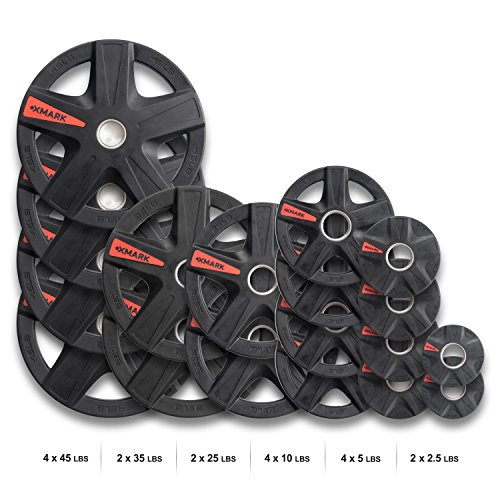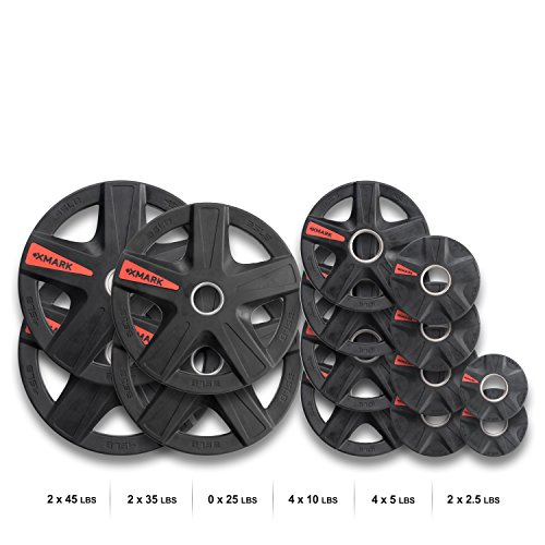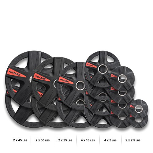 | XMark's TEXAS STAR Select Rubber Coated Olympic Plate Weights Packaged In Sets From 45 lbs. to ... |