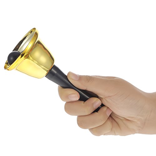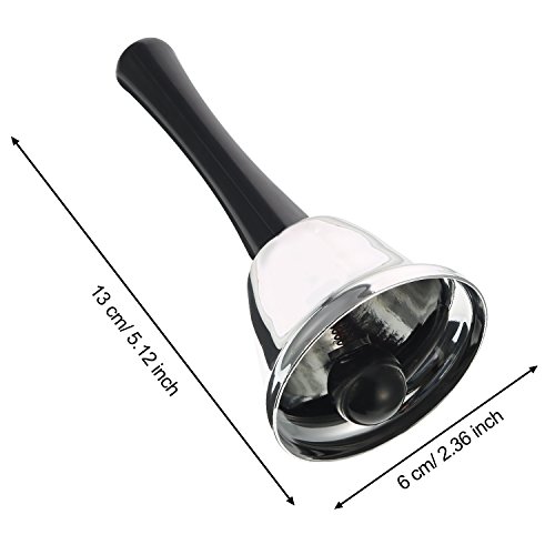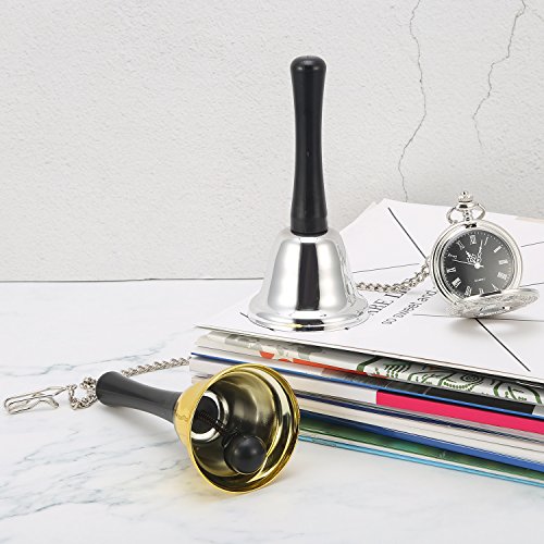 2 Pieces steel tea hand bell loud call bell for wedding events, decoration, food line, gold and silver 2 Pieces hand bells: Each bell the bottom diameter measures 6 cm/ 2.36 inch, the whole height of the hand bell measures 13 cm/ 5.12 inch; Package includes 1 piece gold hand bell, 1 piece silver hand bell, they can be applied for multiple purposes. Good material: This hand bell is made from polished steel with sleek plastic handle with gentle curves. The bell makes a clear ringing tone that quickly grabs attention of groups. Multiple functions: Small hand bell can be useful to teachers in a full classroom of students, for parents, event organizers and at restaurants; Also can as a gift for teacher. Specifications: Quantity: 2 pieces Color: gold and silver Material: metal and plastic Bottom diameter: 6 cm/ 2.36 inch Totally height: 13 cm/ 5.12 inch Package includes: 1 x Gold hand bell 1 x Silver hand bell 0