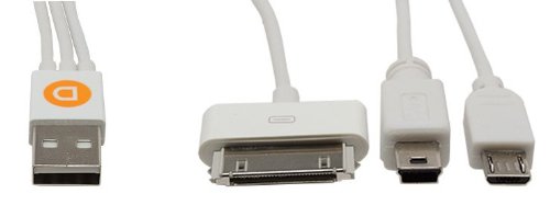 -. Feature : Unique 3 in 1 design allows you to charge multiple phones or tablets at the same time. Charge your cell phone, tablet or digital camera with with your charger block, Mac or Windows USB port. / Micro USB connector is compatible with popular devices like the Samsung Galaxy S3, Samsung Galaxy S4, and most Android smartphones / Apple 30 pin connector is compatible with Apple iPhone 4, Apple iPhone 4S, Apple iPod, Apple iPad 1, Apple iPad2 / Mini-B USB connector is compatible with many devices, including Canon, Nikon, Olympus, and Sony digital cameras, toys,PS3 controller and some cell phones / 40 inch length allows flexibility for where you want to charge your device and gives you extra length for connecting to a computer that's under your desk or hard to reach