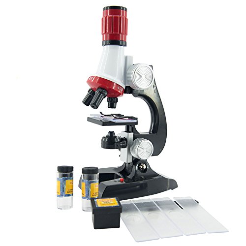-. Feature : Science microscope kit is good toy for a curious child, take the kids into the wonderful microscopic world, get their mind started, it helps to encourages scientific exploration and discovery. / Children through the experimental process, feel the fun of learning scientific knowledge to stimulate children to explore the mystery of science interest, and develop children's manipulative ability and creativity. / Beginner science microscope provides high magnification for educational applications, 100X, 400x and 1200x Magnification. / Packaged Included: 1 microscope, 1 plastic label tray, 1 tweezers, 2 collecting bottles, 5 blank slides and 1 permanent slide. / Package size: 7.5 X 3.5 X 9.4 in. Battery: 2xAA batteries (Not included).
