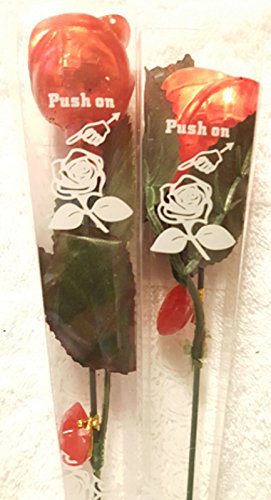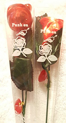 14" Flashing Red Roses with Red Heart Charm on Each Rose ~ Set of 2