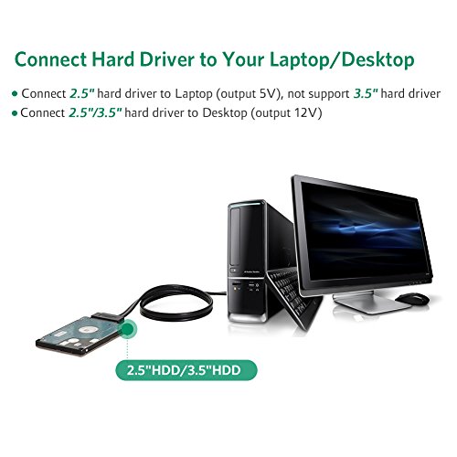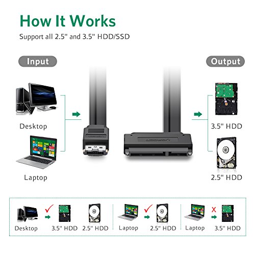 USAGE: Ugreen eSATA to SATA cable allows you connect power over eSATA port supports 5V/12V to SATA 22 Pin HDD.