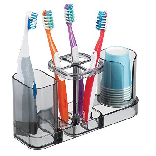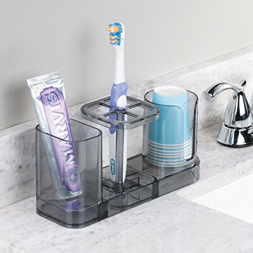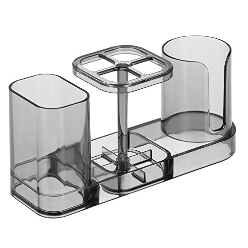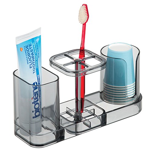 mDesign Bathroom Dental Organization Center with Rinse Cup Dispenser - Smoke