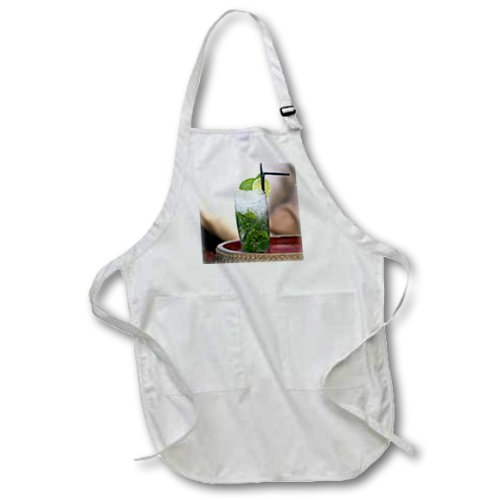 3dRose apr_107758_1 Mojito Cocktail, Ibiza 22-Inch Width by 30-Inch Length Apron with Pockets, Full Length, White