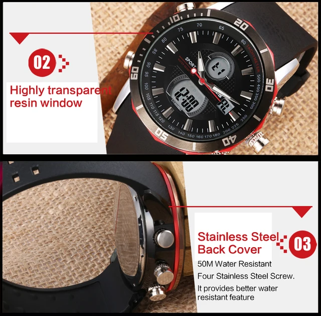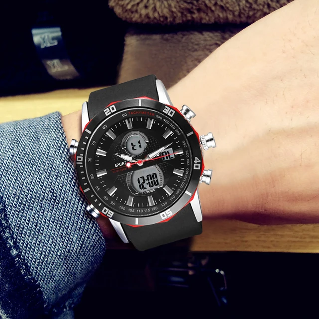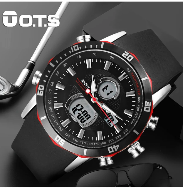 | [해외] OTS 패션 캐주얼 야외 듀얼 디스플레이 대형 LED 디지털 시계 horloges mannen 브랜드 Multfunction 남성 방수 선물 시계 |