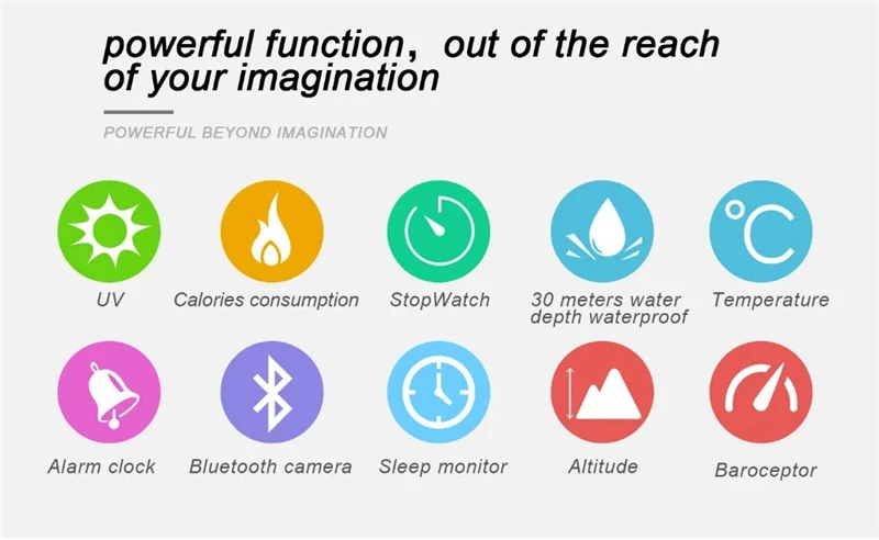 Function:Passometer,Fitness Tracker,Sleep Tracker,Message Reminder,Call Reminder,Remote Control,Push Message,24 hour instruction,Alarm Clock,World Time,Month,Interactive Music,Noctilucent,Calendar,Countdown