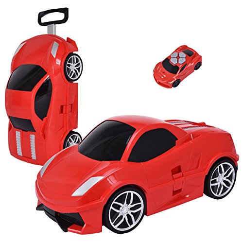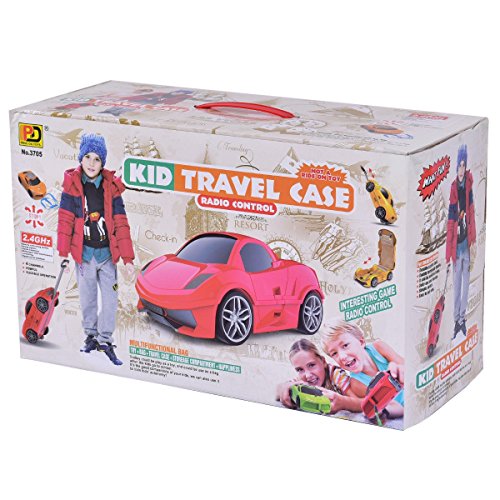 Product Description This kid travel case featuring a fantastic car shape is a multifunctional case, combining toy, travel case, storage compartment functions, which can be used for travel or everyday use. The travel case features intelligent remote control; it can move as an electric car by controller with flexible and convenient operation, forward, backward, turn left, turn right. Equipped with 9.6 V 600 mA rechargeable batteries, the case has a charging time of about 6 hours that can offer about 60 minutes for playing. The case is made of hard-wearing and light weight plastic that is sturdy and durable. It's a good companion of your kids, we can also use it to train kid's autonomy and let your child love picking up his own luggage. Don't hesitate buy it! Multifunctional case: A good companion of your kids Remote control distance within 20 meters with flexible and convenient operation Double telescopic handle Equipped with 9.6 V 600 mA rechargeable batteries A fantastic car shape Durable plastic shell Ergonomic handle Flexible and practical rolling wheels Plenty of storage space Large load capacity of 110 lbs Interior features crossed fixing band and net pocket, making the case tidier Easy to pull seal and open with the embedded hasp lock Perfect for children above 37 months 0