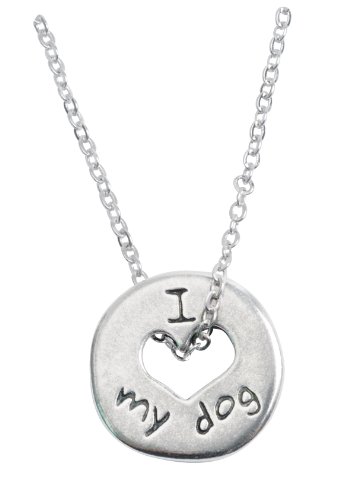 -. Feature : 18" cable chain necklace / Cut-out heart shape in disk / Message: I love my dog