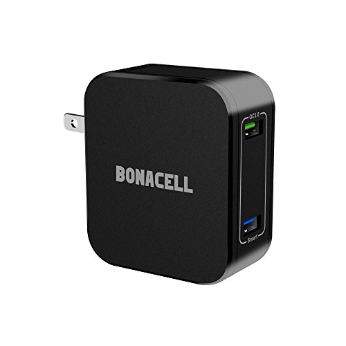 -. Feature : One Charger Boosts All: Combines 18W QC 3.0 and 12W Smart charging ports in a single wall charger, it ensures the fastest charging speed and compatibility for all your 5V powered devices / Adaptively charges All 5V output USB powered devices including Android and Apple devices at up to 2.5A or 2.4A (smart port)! / Qualcomm Quick Charge 3.0 Technology: Ensures the fastest charging efficiency up to 80% in 35 minutes, 4x faster than conventional charger. Backward compatible with QC 1.0 and 2.0 Technology / Exclusive Bonacell technology provides temperature control, surge protection and more advanced safety features, keeping your devices safe and durable. / Buy with confidence! 30 days money back, free exchange and worry-free customer service guaranteed