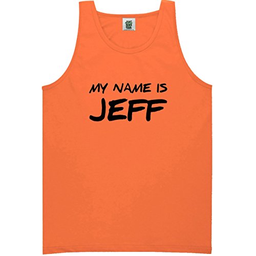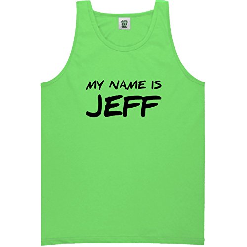Product Description The text "My Name Is Jeff" is featured on a Bright Neon pigment dyed Tank Top. This tank is made from breathable 6.1 oz. 100% pre-shrunk cotton and features double needle stitching for durability and bound on trim for comfort. Machine washable bright colors. 0